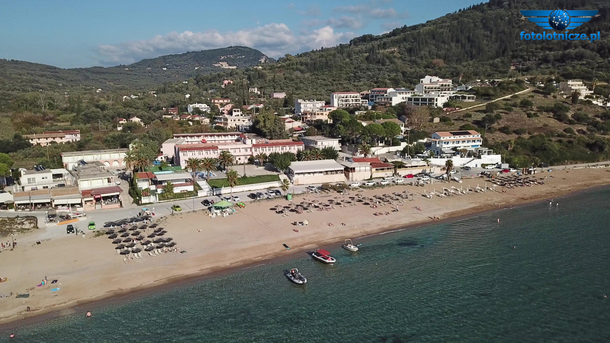 Plaża Agios Georgios Pagon (Korfu, Grecja) 🇬🇷 na północno-zachodnim Korfu to jedna z najpiękniejszych, piaszczysto-żwirowych plaż na wyspie, mierząca około 2 km długości. Oferuje krystaliczną wodę, łagodne zejście do morza (idealne dla rodzin) oraz liczne tawerny i sporty wodne. To doskonała baza wypadowa do zatoki Porto Timoni. Najważniejsze informacje o plaży Agios Georgios (Korfu): Charakterystyka: Plaża jest długa, szeroka, piaszczysta z domieszką drobnego żwirku. Otoczona jest wzgórzami, co tworzy malowniczy krajobraz. Zagospodarowanie: Plaża jest dobrze zagospodarowana, oferuje leżaki i parasole (często bezpłatne przy zamówieniu w barze lub w cenie hotelu). Dostępne są prysznice i przebieralnie. Dla dzieci: Zejście do wody jest łagodne, co czyni ją bezpieczną dla rodzin z dziećmi. Aktywności: Popularne sporty wodne, m.in. windsurfing, kajaki (możliwość dopłynięcia do Porto Timoni), rowery wodne. Dojazd i parking: Bezproblemowy dojazd samochodem, dostępne są miejsca parkingowe. Okoliczne atrakcje: W pobliżu znajduje się słynna, podwójna zatoka Porto Timoni (ok. 3 km) oraz miejscowość Afionas.